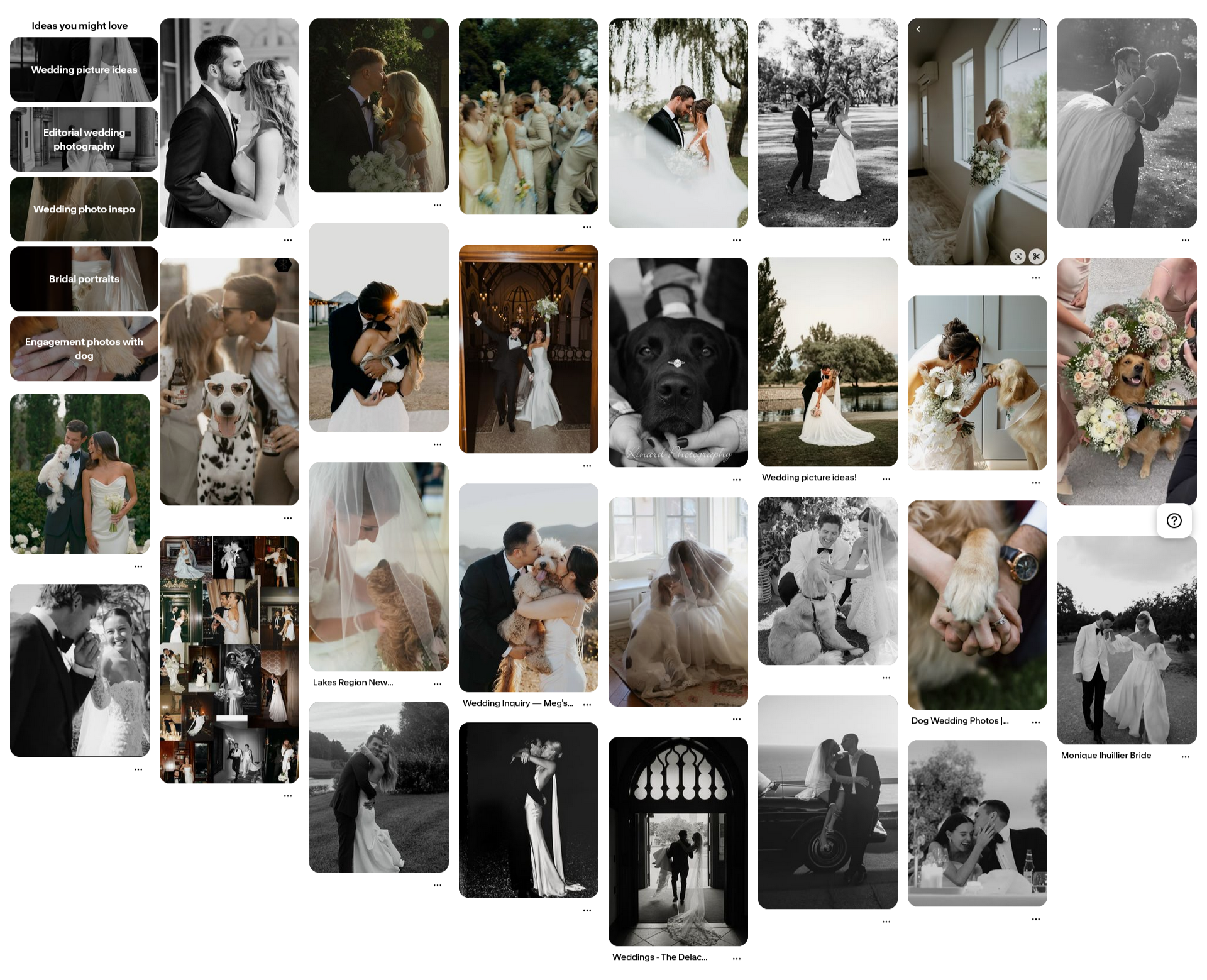 I absolutely love a Pinterest board - I want to see your vision, and it often gives me ideas and inspiration that I wouldn’t have thought of myself. However, keep in mind that some poses and shots won’t necessarily work. For instance, something with glinting light shining in the background - maybe it will be rainy or cloudy on your wedding day. Obviously a photo in a field with a mountain backdrop won’t be happening if those don’t exist at your venue. You get the idea! Even some poses won’t work as well (ie, a height difference can be good for some poses and bad for others, same if you are a similar height as your partner).